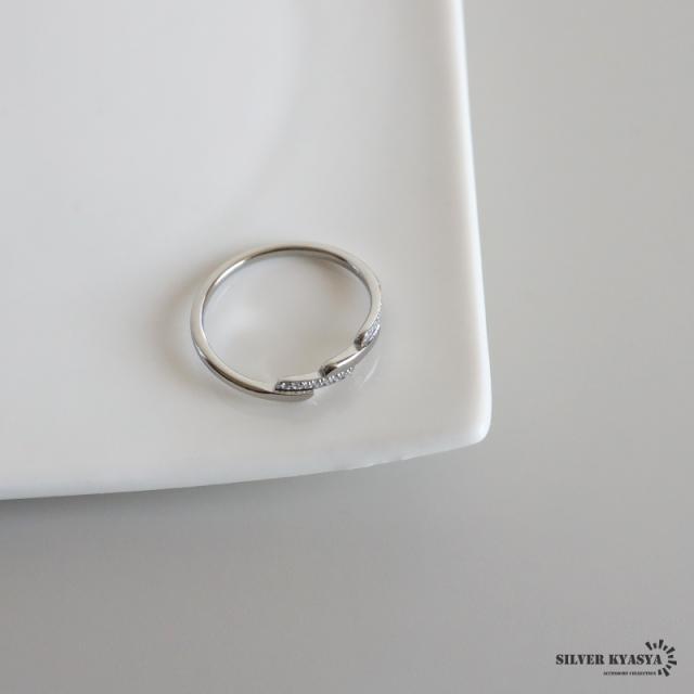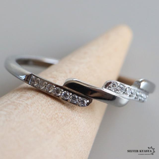 ステンレス 幾何学ラインリング 小粒 ストーンリング 細身 華奢 キラキラ シルバー プチプラ ビジュー 可愛い 重ね付け ハーフエタニティ風 大人 つけっぱなしok レディース 女性 金アレ対応