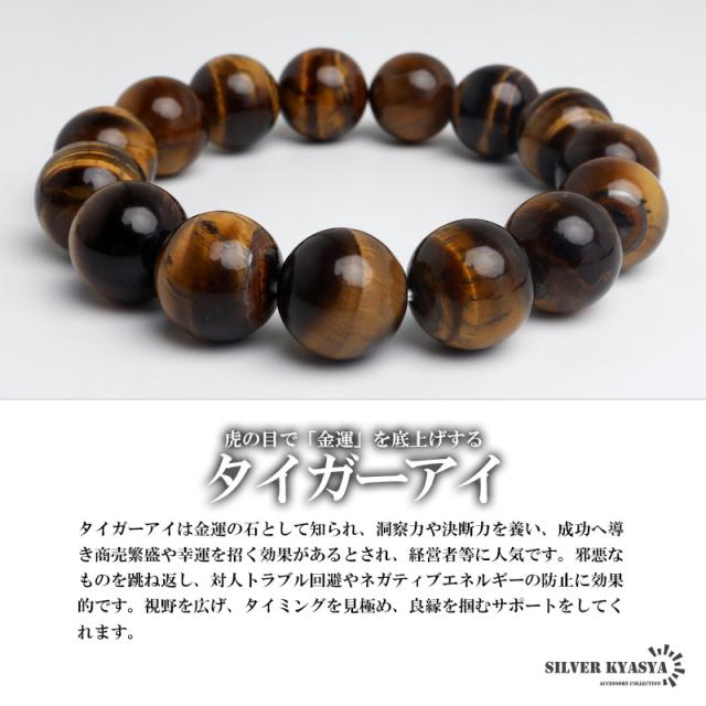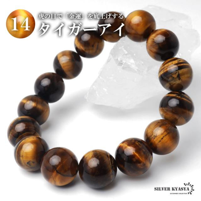 パワーストーンブレスレット 数珠ブレスレット タイガーアイ 14mm 天然石ブレスレット 金運 仕事運
