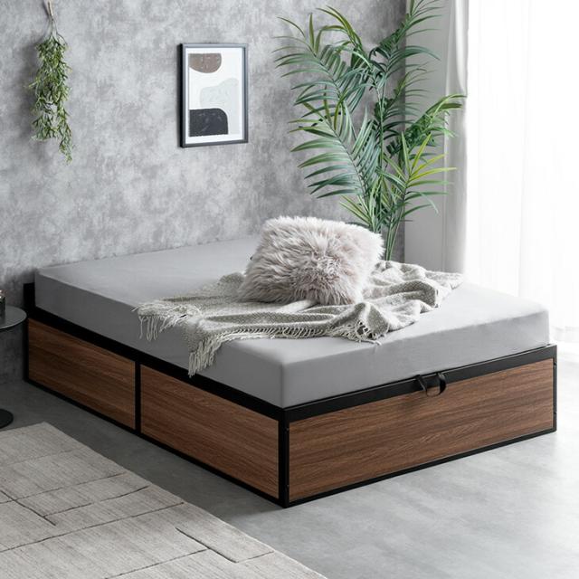 跳ね上げ式 収納ベッド シングルベッド ベット 大容量 ヘッドレス 収納付き 跳ね上げ式ベッド 跳ね上げベッド フレーム 北欧 ブラウン ホワイト おしゃれ