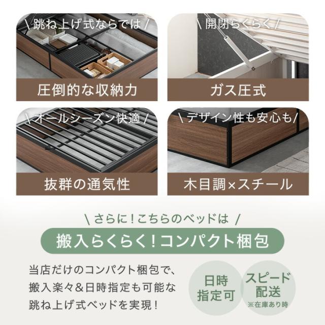 【正午〜P5%還元】 跳ね上げ収納ベッド シングル 大容量 収納ベッド ヘッドレス ガス圧 跳ね上げベッド 跳ね上げ ベッド 跳ね上げ式ベッド スチール シングルベッド 跳ね上げ式 収納付きベッド ベッドフレーム 収納 収納付き