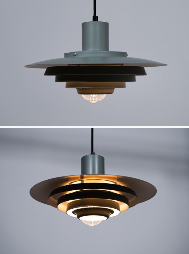 段になったシェードから美しく灯りが広がる