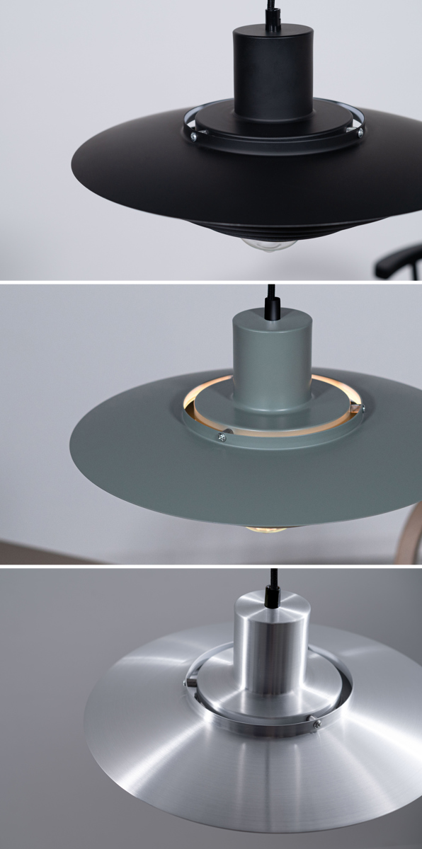 ヴィンテージな雰囲気の落ち着いたカラーバリエーションも魅力。ブラックとグリーンはマットな質感でノスタルジックな印象に、シルバーは金属の光沢がスタイリッシュなデザインに仕上げました。ソケット部分も本体とカラーを合わせることで、より統一感を持たせています。