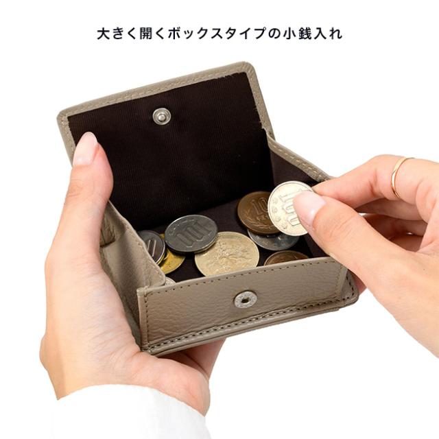 フラップを開くと箱型に立ち上がる小銭入れで、中身がひと目で確認でき、取り出しもスムーズです。