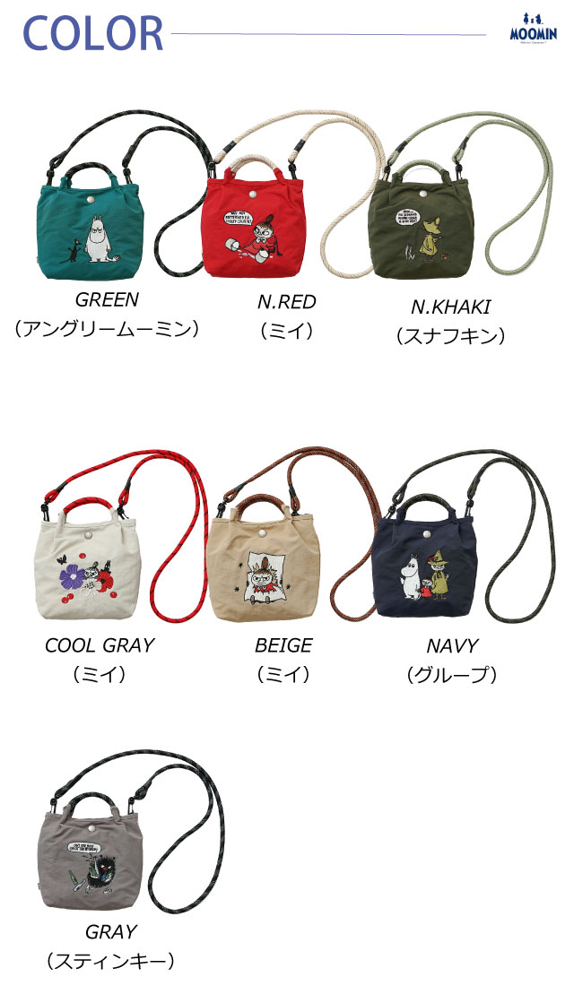 ■イメージ:おしゃれ・かわいい・お洒落・おすすめ・人気・通販・可愛い・ガール・かっこいい・無地・シンプル・使いやすい・グレー レッド ベージュ ネイビー グリーン ムーミン ミィ ミイ スナフキン リトルミイ 2wayバッグ 2wayトート 2wayショルダー 軽量 ムーミンバッグ レディーストート ミニショルダー ポシェット スマホショルダー