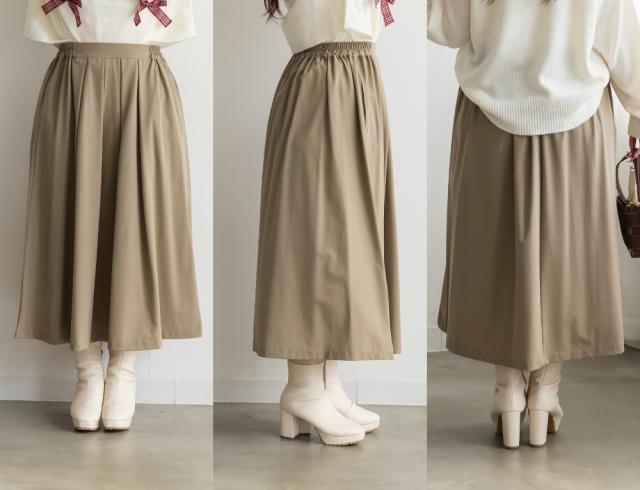| 3Lサイズを着用してぴったりの着心地でした。ウエストはしっかりゴム入りで楽で窮屈感のない着心地です!たっぷりとしたフロントタックがお腹まわりをすっぽりカバーしてくれて、ウエストをしっかりキュッと引き締めてくれるデザインです。フレアシルエットがすっきりとカバーしてくれるので華奢見えが叶います♪たっぷりの生地感が歩くたびにゆれて女性らしく綺麗なシルエットです!オフィスから普段使いまで幅広いスタイリングが出来ます◎生地も少しハリがある感じでオールシーズン着られます! |