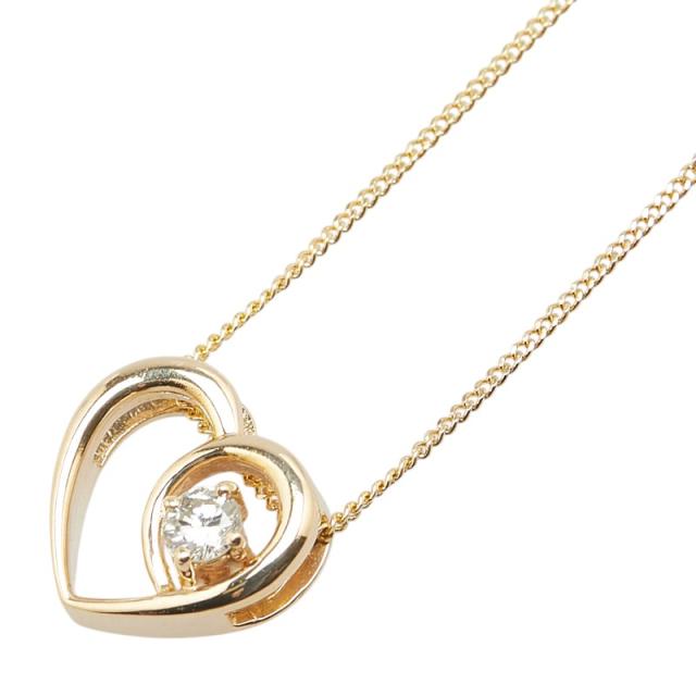 K18YG イエローゴールド ダイヤ0.11ct ハート モチーフ ペンダントネックレス レディース 中古