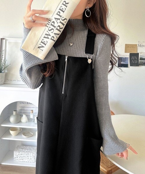 フロントのジップデザインがアクセントになり、抜け感とモード感を両立♪
