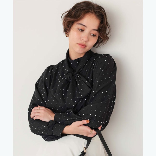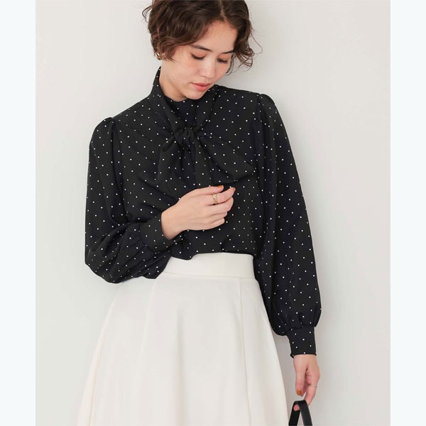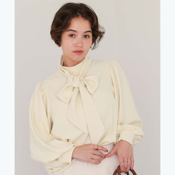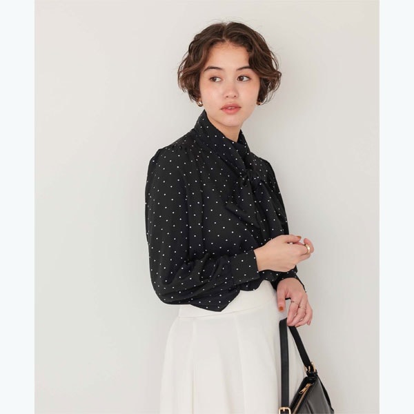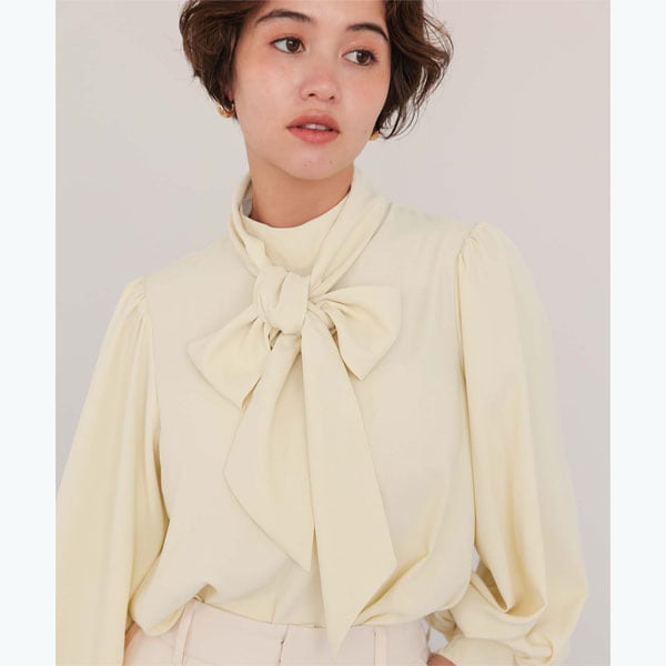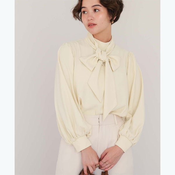 ・ボウタイリボン付きの華やかなブラウス。リボンは別で付属されているので、リボン無しでも、ありでも着ていただけます。
