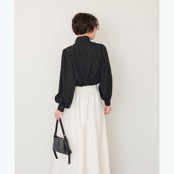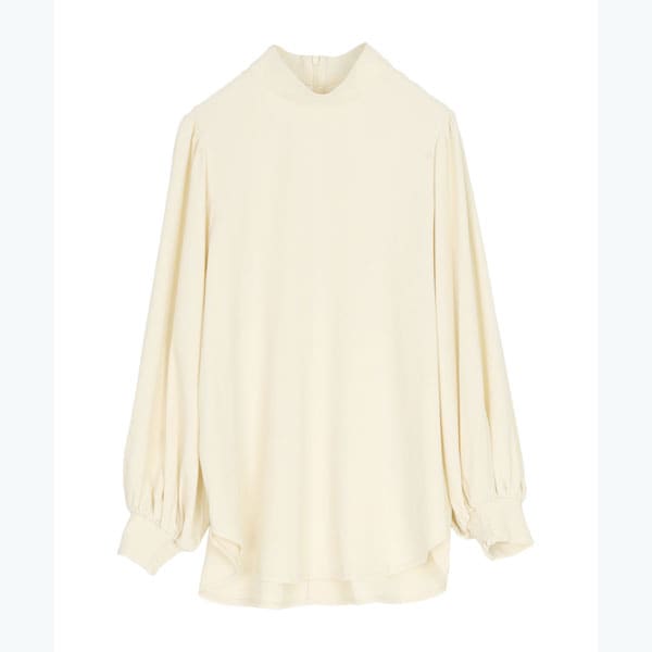 ・袖口は部分的にゴムを中に内蔵しており、ひじの位置でも袖が止まる仕様に。袖にパフっとボリュームをもたせて着るとより女性らしさもUP。