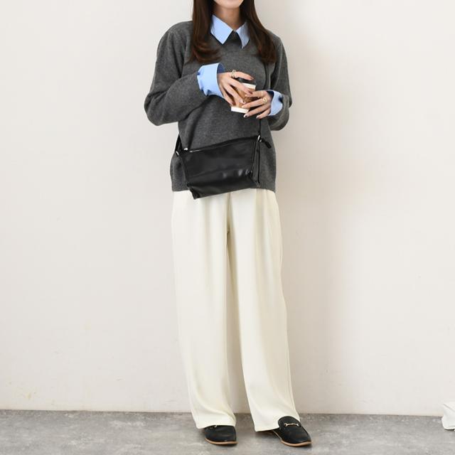 小ぶりな見た目ながらマチがしっかりあり、長財布や500mlペットボトルも入る収納力◎
