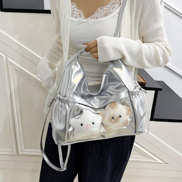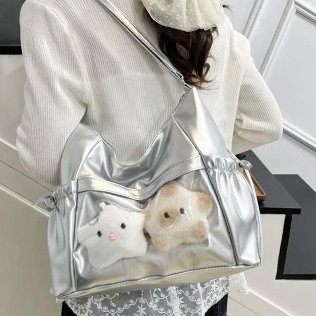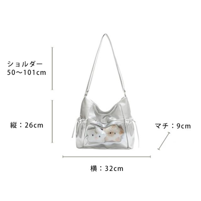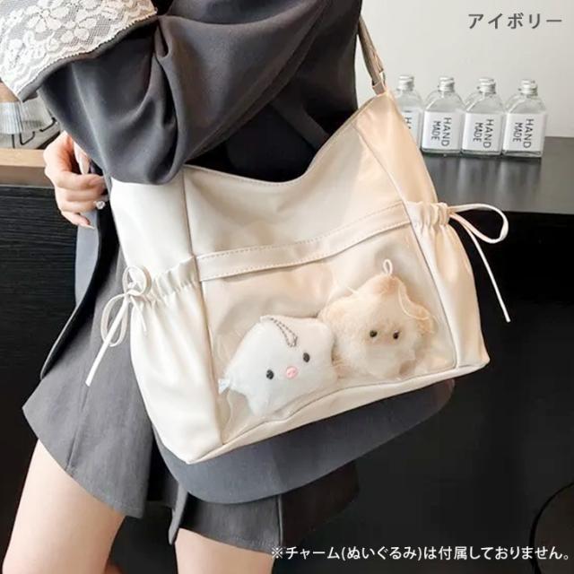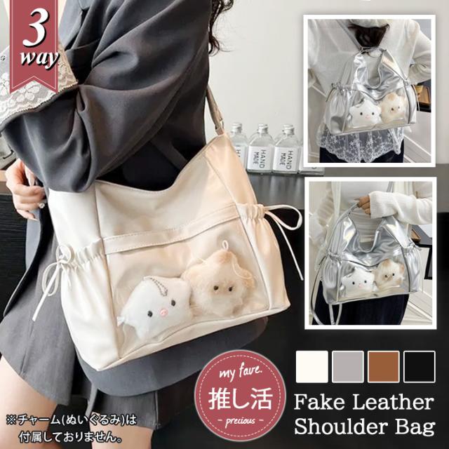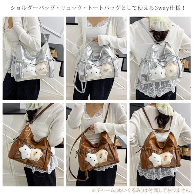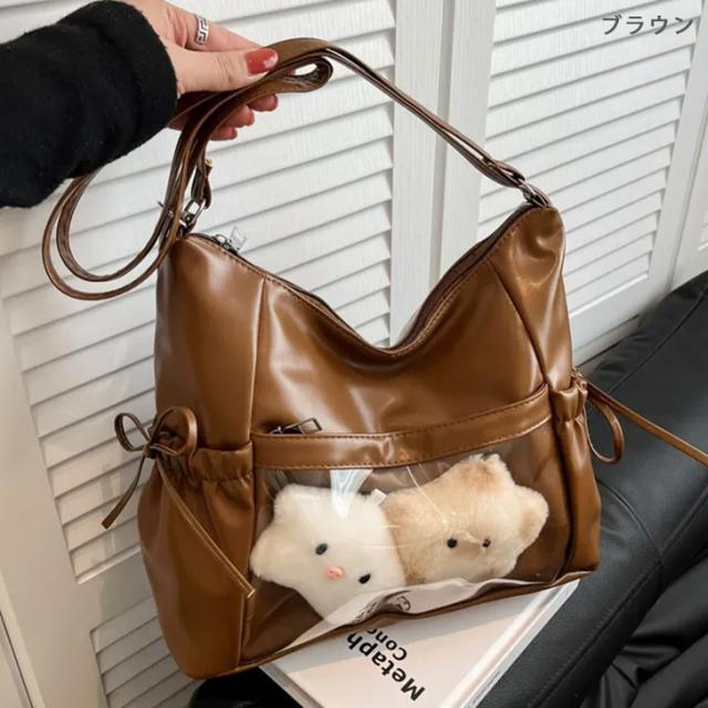 新作 横型クリアポケット3wayフェイクレザーショルダーバッグ レディース ショルダーバッグ リュック トートバッグ 痛バッグ クリアバッグ 推し活 ぬい 缶バッジ 斜めがけ 肩掛け 軽量 リボン おしゃれ かわいい