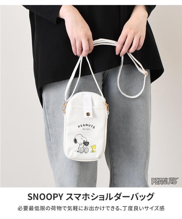 スヌーピーのキャラクターがデザインされた可愛いスマホショルダーバッグ!