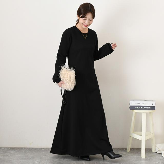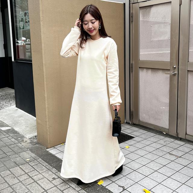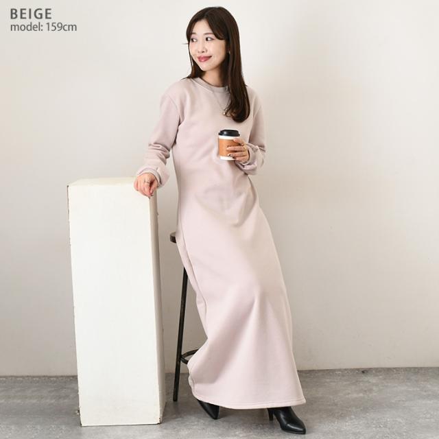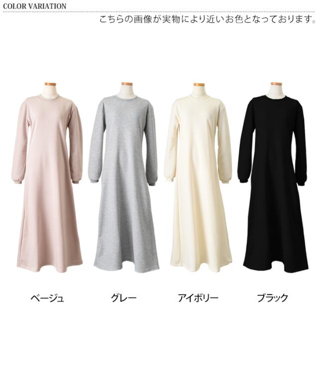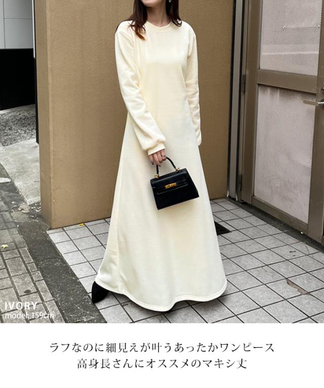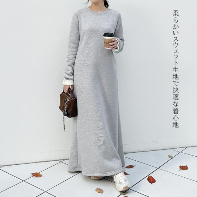 新作 裏起毛Aラインマキシ丈スウェットワンピース レディース 秋冬 長袖 厚手 おしゃれ ロング丈 暖かい あったか 防寒 スエット リラックス 無地 部屋着 ルームウェア 楽ちん 高身長 丈長め シンプル デイリー