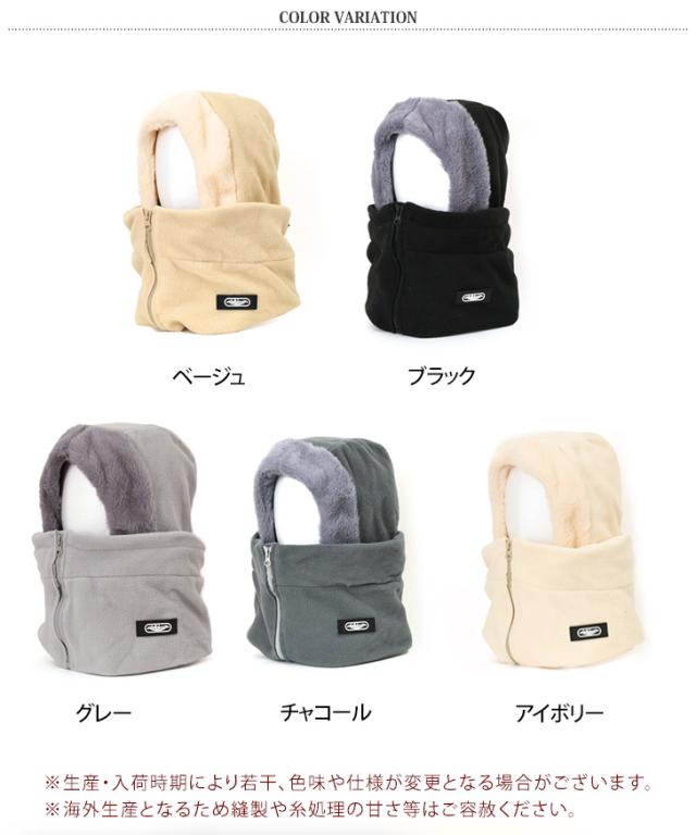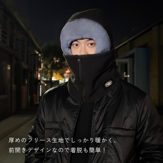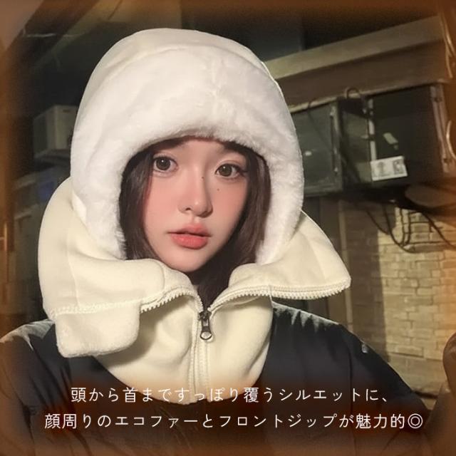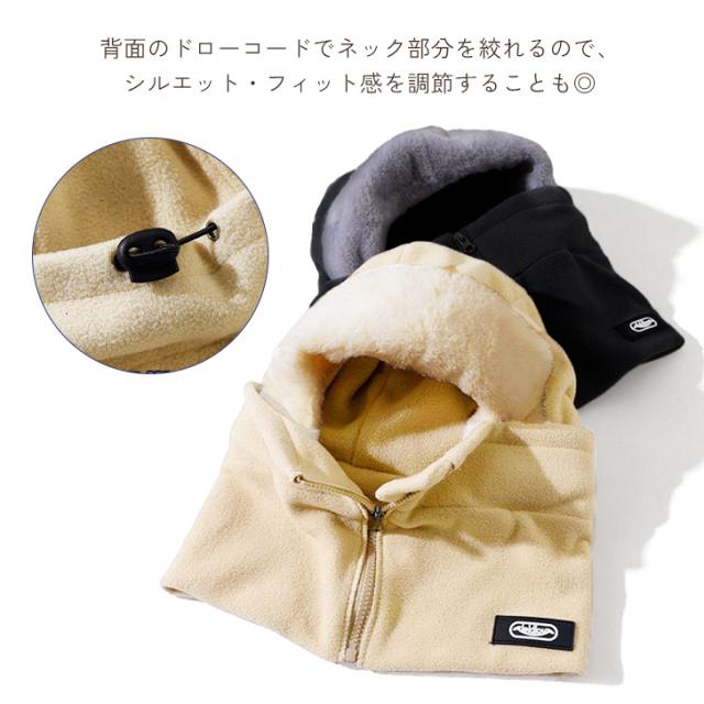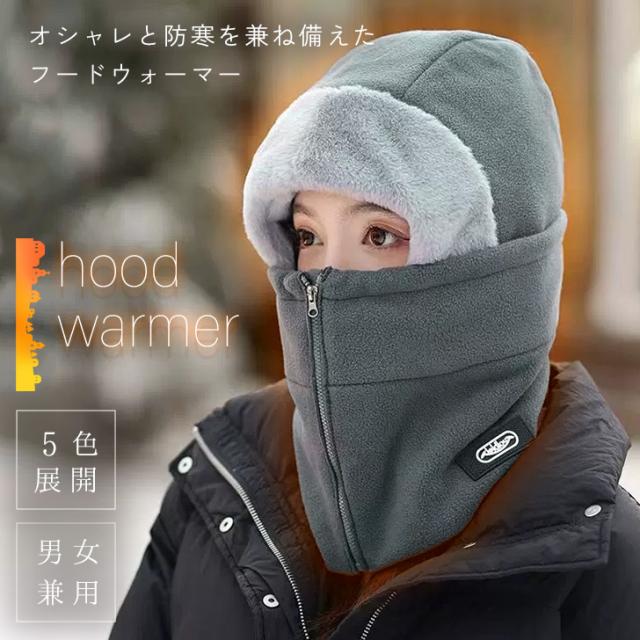 新作 フロントジップあったかフリースフードウォーマー レディース メンズ バラクラバ 帽子 フーディー ネックウォーマー スヌード マフラー フードマフラー 冬 防寒 暖かい おしゃれ 前開き もこもこ ボア ファー