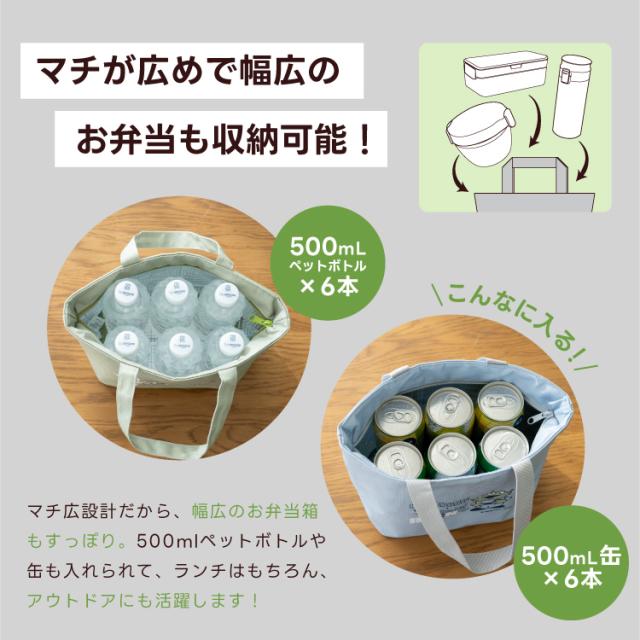 保温保冷素材なので、お弁当はもちろん、缶やペットボトルを入れてレジャーでも大活躍!