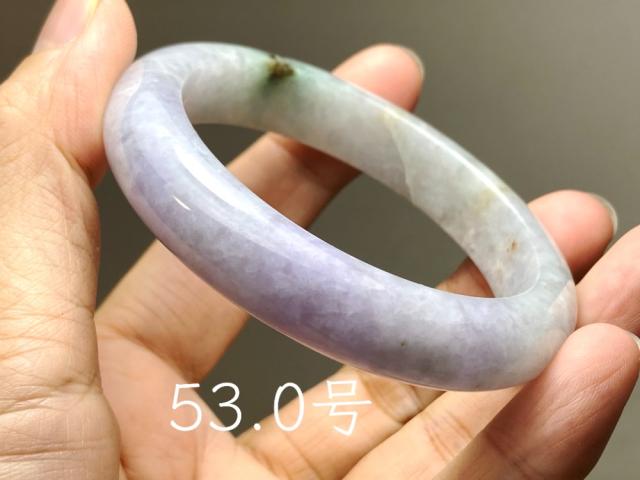 BG9-52 訳あり処分品 ラベンダー 春彩 53.0mm 糯氷種 ラベンダー ミャンマー産 A貨 本翡翠 バングル