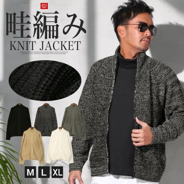 ニットジャケット メンズ ニット セーター フルジップ スタンドネック 冬【畦編みニットスタンドネックフルジップジャケット】 aa-3756