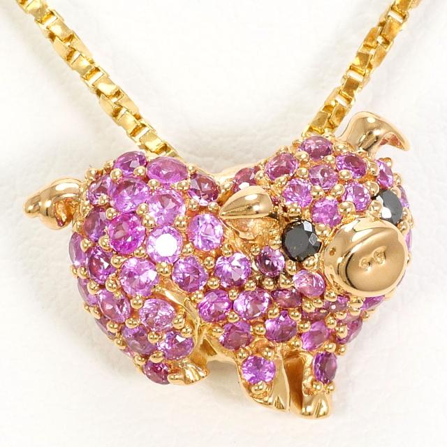 K18 18金 YG イエローゴールド ネックレス ブラックダイヤ ピンクサファイア 鑑別書 総重量約5.4g 約40cm 中古ジュエリー
