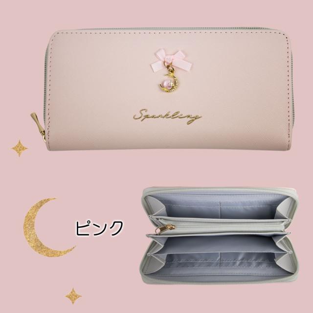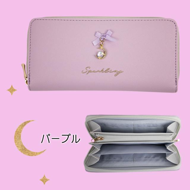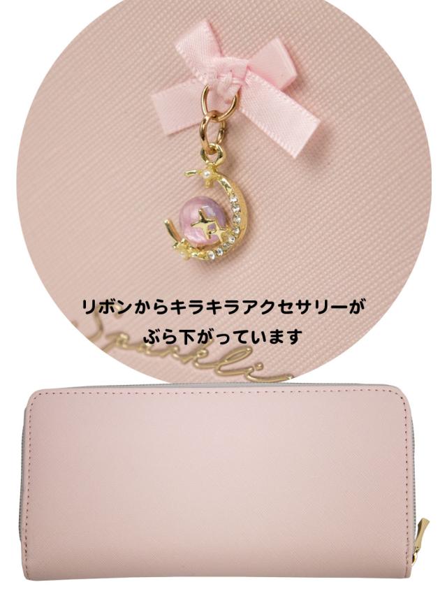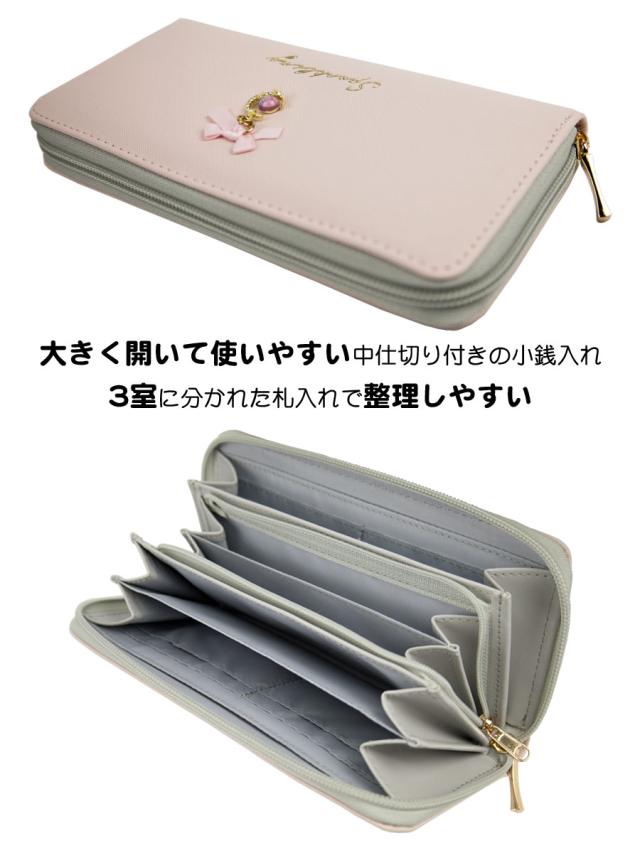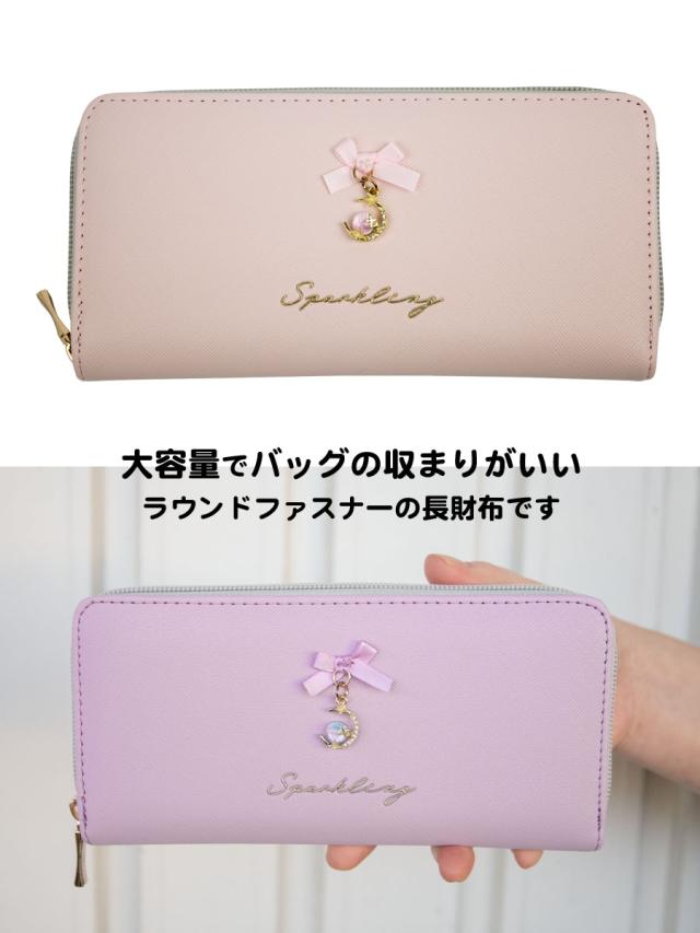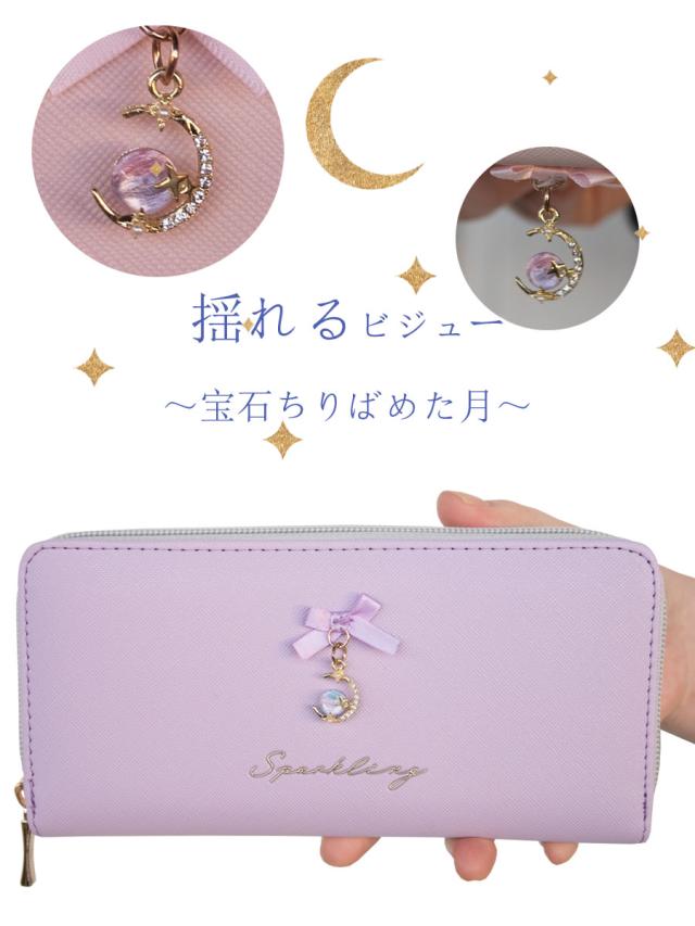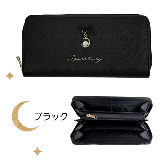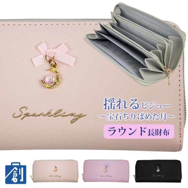 長財布 レディース キッズ 女の子 女子 小学生 中学生 高校生 ラウンドファスナー 長財布 リボン ビジュー ロングウォレット シンプル おしゃれ かわいい 揺れる月 ビジュームーン ラウンド長財布 MLS-5331