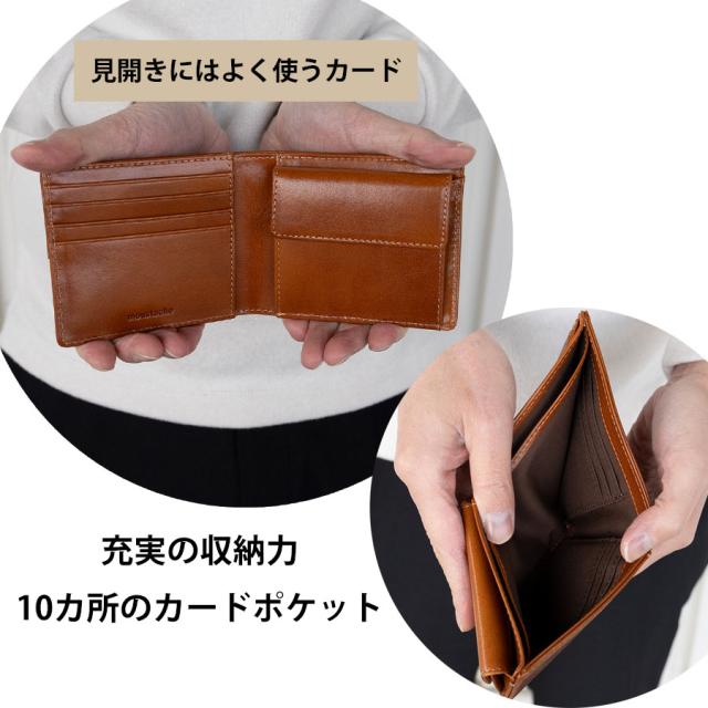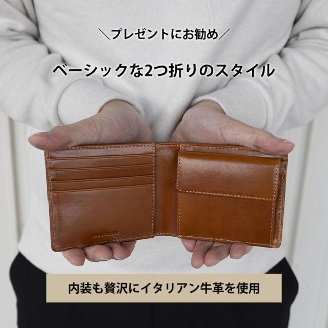 二つ折り財布 メンズ ブランド 本革 革 レザー 2つ折り財布 財布 メンズ 二つ折り 小銭入れ シンプル 無地 おしゃれ カジュアル MOUSTACHE ムスタッシュ イタリアン牛革 二つ折り財布 DAG-0410