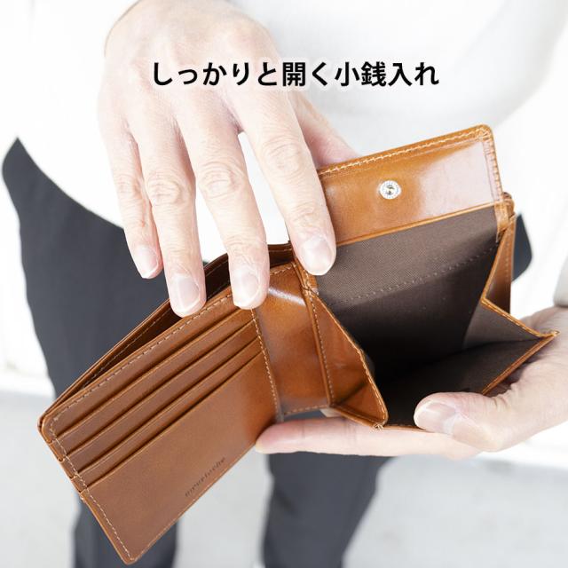美しい艶が楽しめる二つ折り財布です