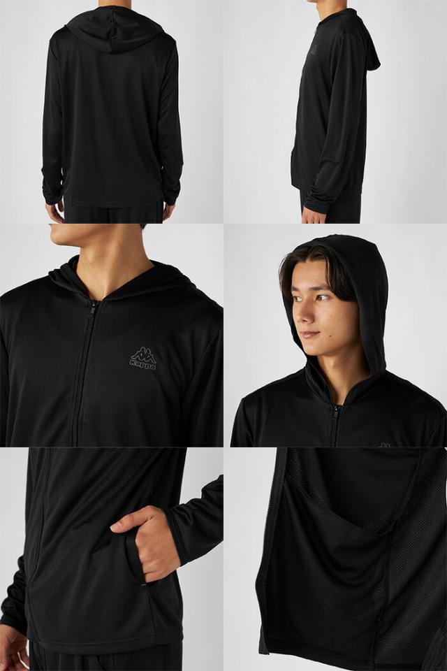 トラックジャケット:杢グレー/ロングパンツ:ブラック/フルジップパーカー:ブラック/ストレートロングパンツ:ブラック/半袖Tシャツ:ホワイト/半袖ハーフジップシャツ:ブラック/ハーフパンツ:ブラック