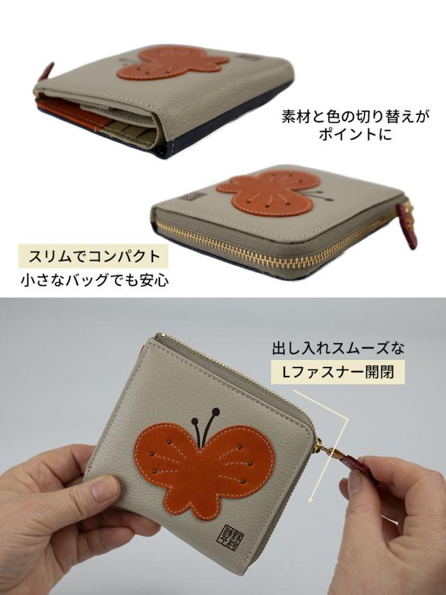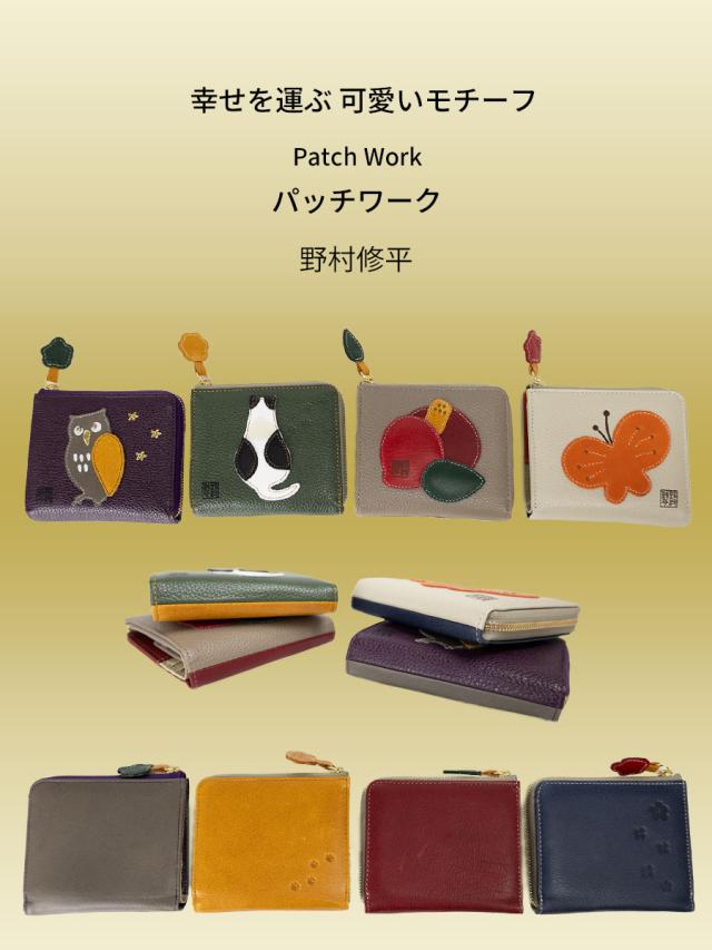 二つ折り財布 レディース ファスナー 本革 革 レザー おしゃれ 動物 開運 猫 ふくろう 蝶 椿 一粒万倍日 プレゼント ギフト 野村修平 パッチワーク Lファスナー二つ折り財布 80310