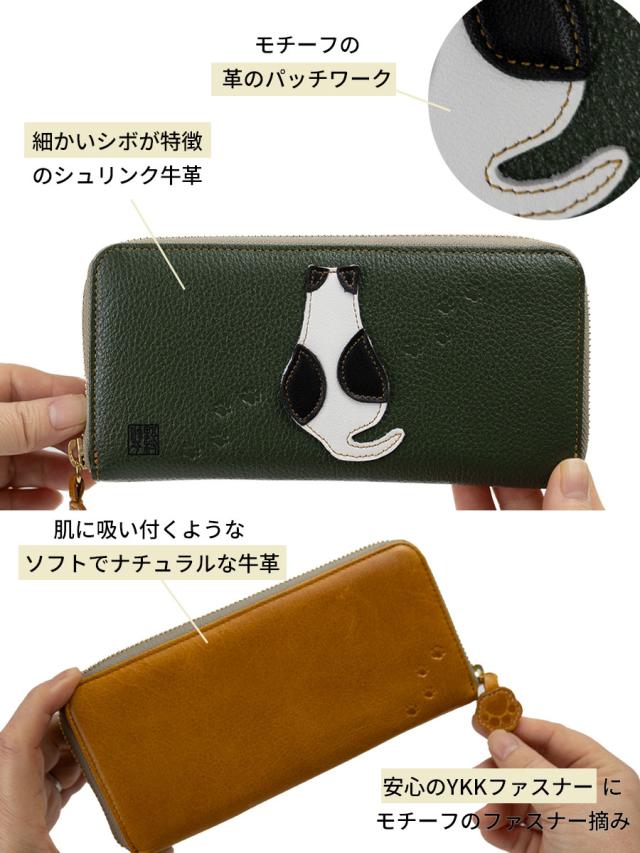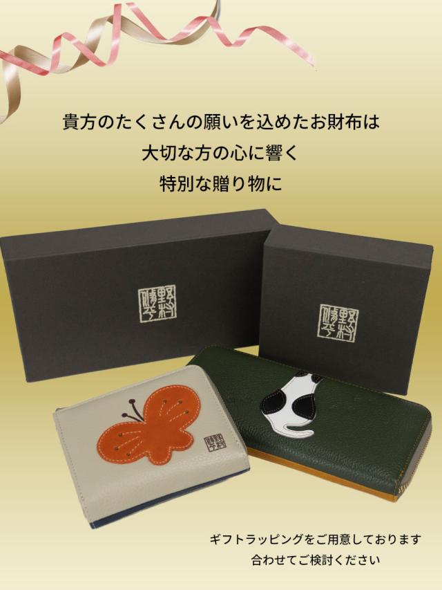 長財布 レディース ラウンドファスナー 本革 革 レザー おしゃれ 動物 開運 猫 ふくろう 蝶 椿 一粒万倍日 プレゼント ギフト 野村修平 パッチワーク ラウンドファスナー長財布 80311