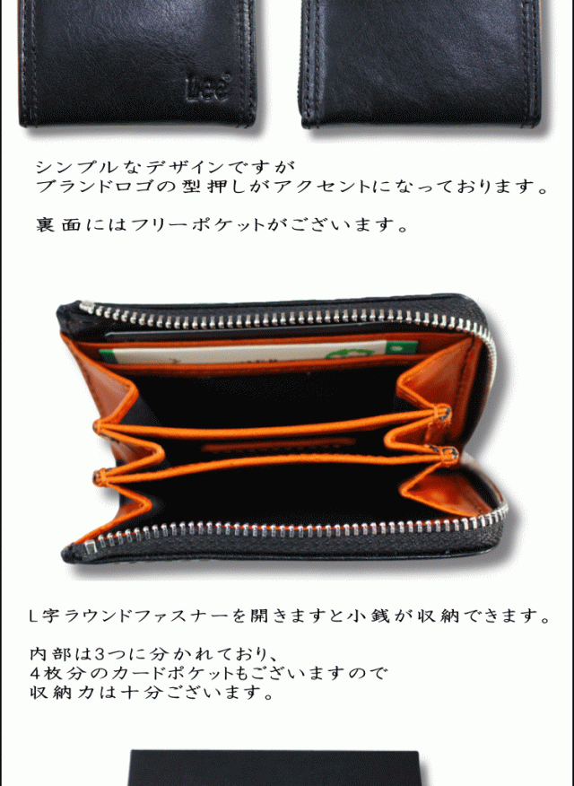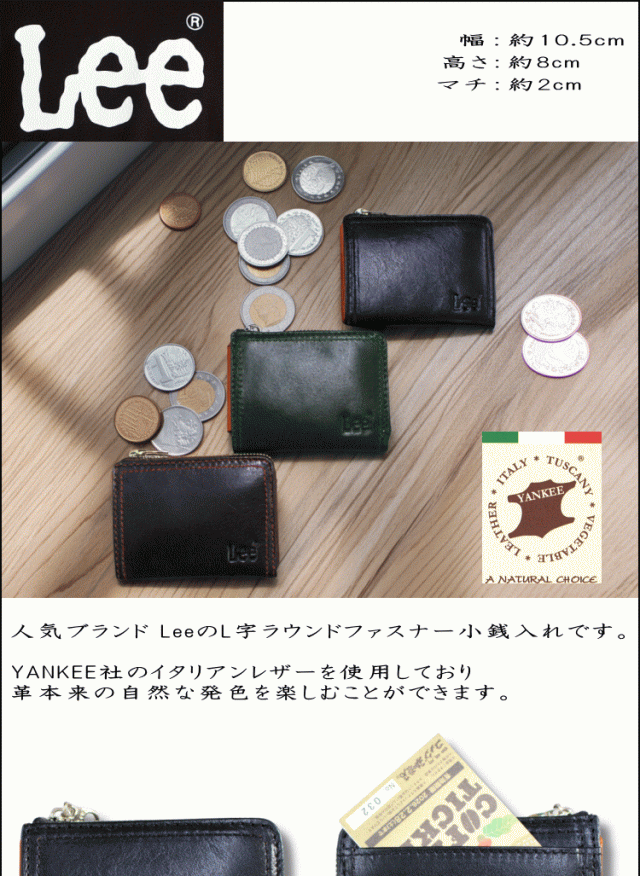 財布 小銭入れ コインケース Lee イタリアンレザー 牛革 本革 L字ラウンドファスナー 320-2100 ブラック色 チョコ色 グリーン色 財布 メンズ