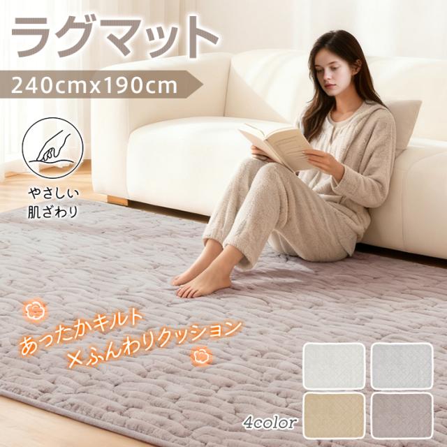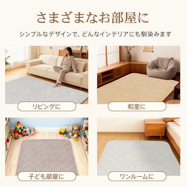 キルトラグ カーペット ラグ マット 絨毯 じゅうたん おしゃれ 北欧 ふわふわ やわらかい 厚手 通年使用 滑り止め リビング 子ども部屋 洗える 丸洗い 起毛 肌ざわり くすみカラー シンプル ナチュラル in068-l