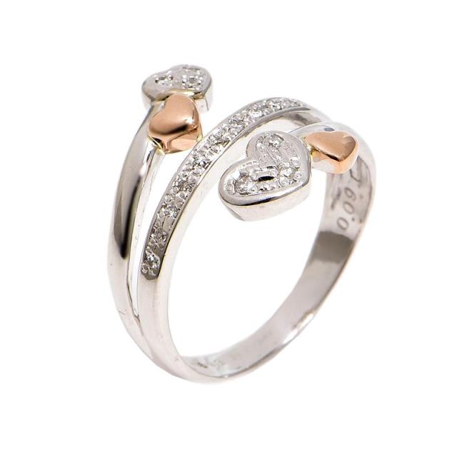 0.09ct天然ダイヤモンドリング 12号 K18WG K18PG ハートモチーフ 交差デザイン 3ロウ 重なり合う ホワイトゴールド 地金4.4g 中古 送料無料