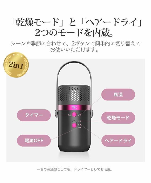 【乾燥対策&ヘアドライヤー】 布団乾燥機 14*7cm 乾燥機 小型 ふとん乾燥機 3段調温&5段タイマー 衣類乾燥機 ドライヤー くつ乾燥 靴乾燥機 布団乾燥 部屋干し 梅雨対策 ダニ退治 湿気対策 花粉対策 速乾 速暖 メモリー機能 PSE取得済