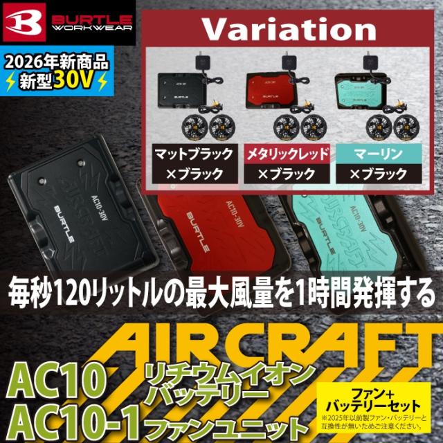 (予約)バートル BURTLE 作業服 作業着 2026春夏新作 エアークラフト AC10 + AC10-1 新型30Vバッテリーブラックファンセット 株式会社空調服 製品と互換性なし
