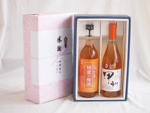 感謝の贈り物ボックス 和歌山産南高梅と国産蜂蜜の梅酒と国産ワインセット(かもし甲州 オレンジワイン 辛口(山梨県)720ml和歌山県 蜂蜜の梅酒12度 720ml