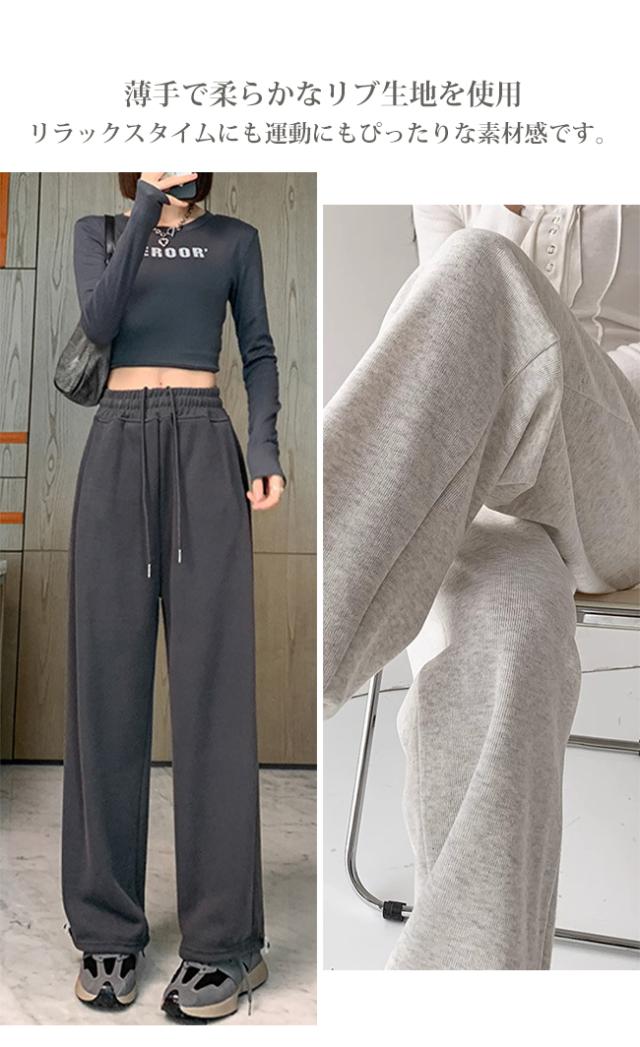 春新作 スウェットパンツ レディース ワイドパンツ ストレッチ ポケット付き ウエストゴム ボトムスロングパンツ ルームウェア 美脚 カジュアル 体型カバーゆったり 無地 リラックス 薄手 冬 秋 春 ポイント消化 母の日