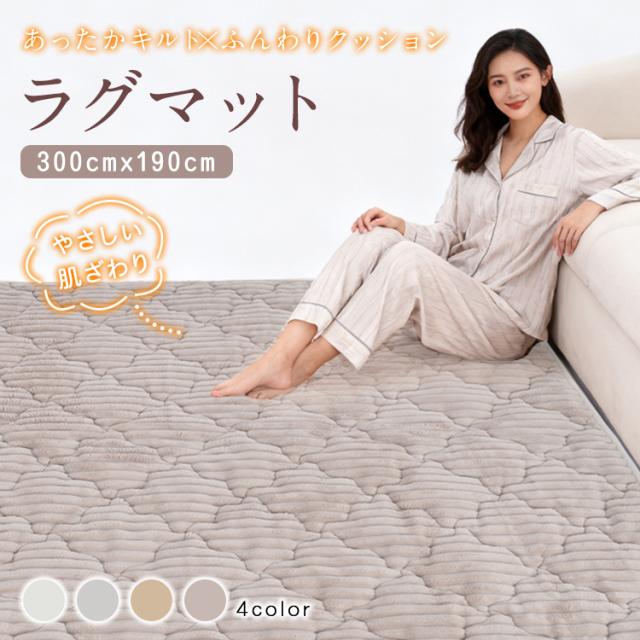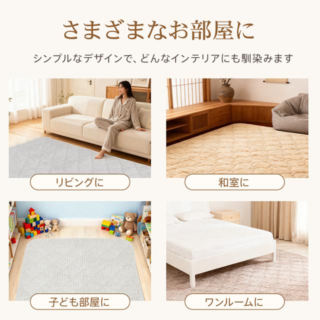 キルトラグ カーペット ラグ マット 絨毯 じゅうたん おしゃれ 北欧 ふわふわ やわらかい 厚手 通年使用 滑り止め リビング 子ども部屋 洗える 丸洗い 起毛 肌ざわり くすみカラー シンプル ナチュラル in068-xl
