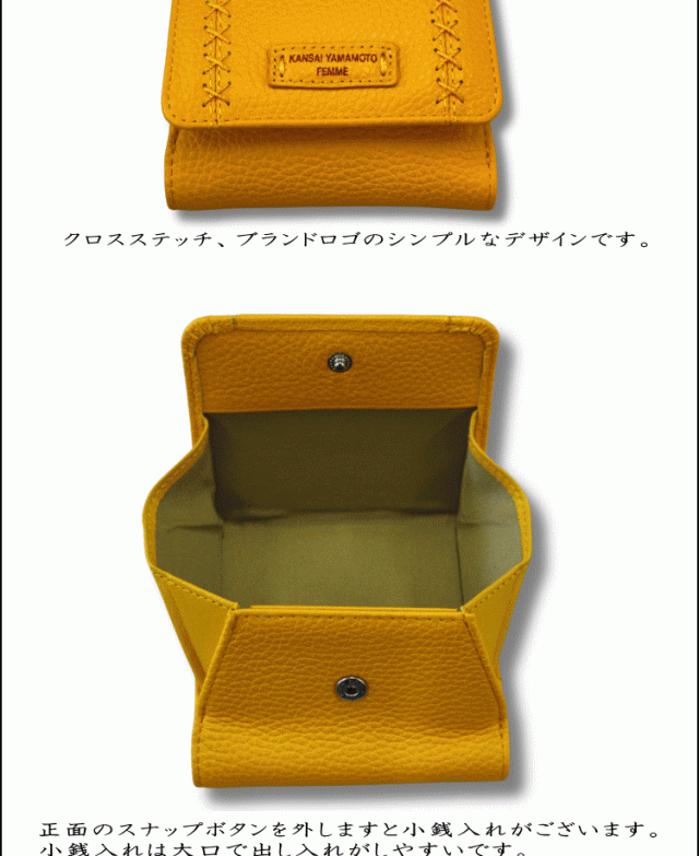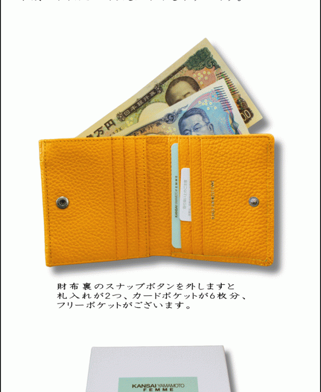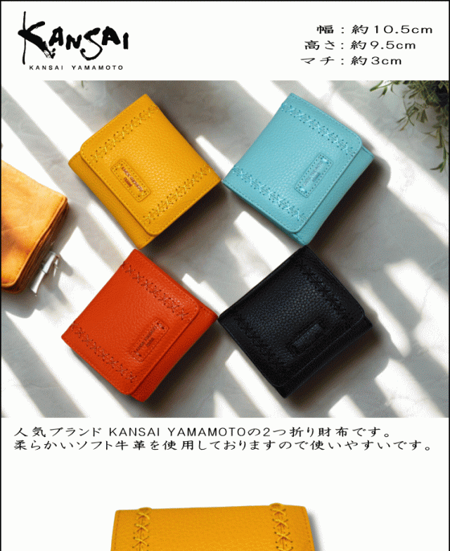 財布 KANSAI YAMAMOTO 山本寛斎 ヤマモトカンサイ 財布 レディース 二つ折り 本革 小銭入れ付き MJ6231 イエロー色 ミント色 オレンジ色 ブラック色