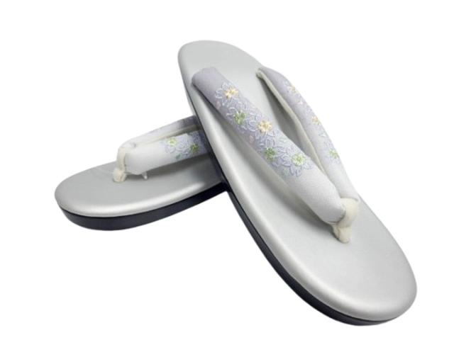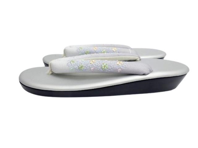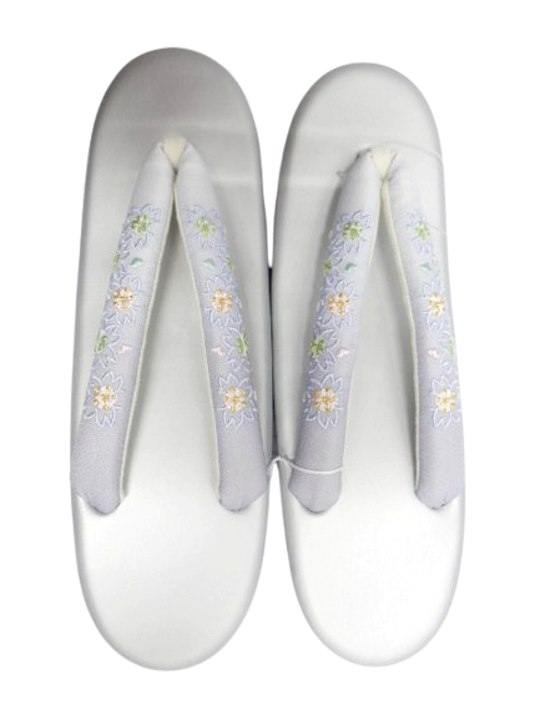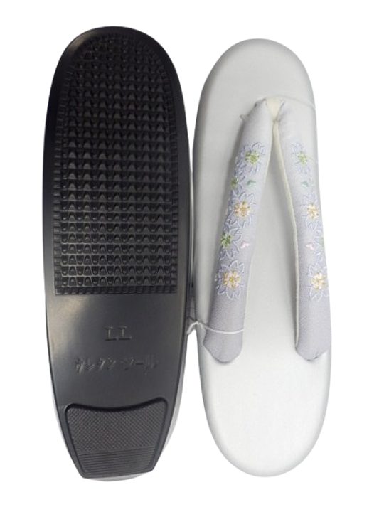 草履 レディース 和装 ウレタン草履 刺繍 軽量 女性 痛くない ウレタン 着物 ぞうり 上品 卒業式 和装草履 LLサイズ グレー地 ボカシ 刺繍 桜柄 No.23