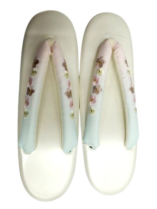 草履 レディース 和装 ウレタン草履 刺繍 軽量 女性 痛くない ウレタン 着物 ぞうり 上品 卒業式 和装草履 LLサイズ グリーン グレー地 ボカシ 刺繍 梅柄 No.24