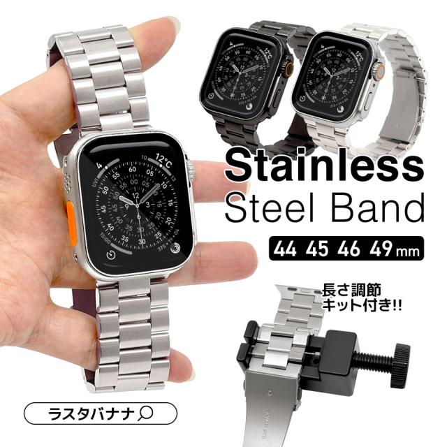 【送料無料】Apple Watch 49mm 46mm 45mm 44mm ステンレス バンド 長さ調節キット付き アップルウォッチ 交換用ベルト ラスタバナナ RAWST4410BK RAWST4410SV