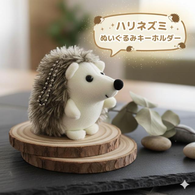 まるで本物のハリネズミのように愛らしい、手のひらサイズのぬいぐるみキーホルダーです。