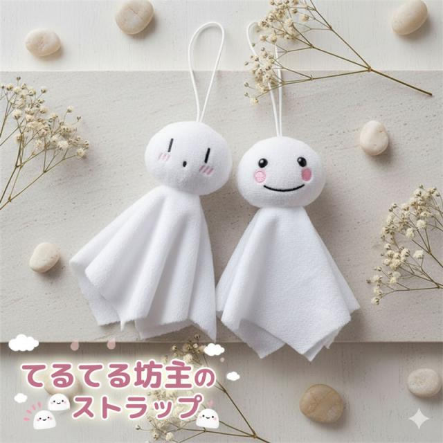 送料無料 2タイプ てるてる坊主 ストラップ マスコット キーホルダー バッグチャーム ぬいぐるみ 吊り下げ 飾り 晴れ祈願 雨除け 梅雨対策 縁起物 和風 小物 車内 玄関 窓際 手作り ギフト プレゼント