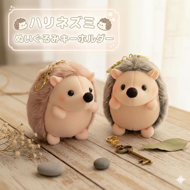 愛らしいハリネズミのふわふわぬいぐるみキーホルダーです。
