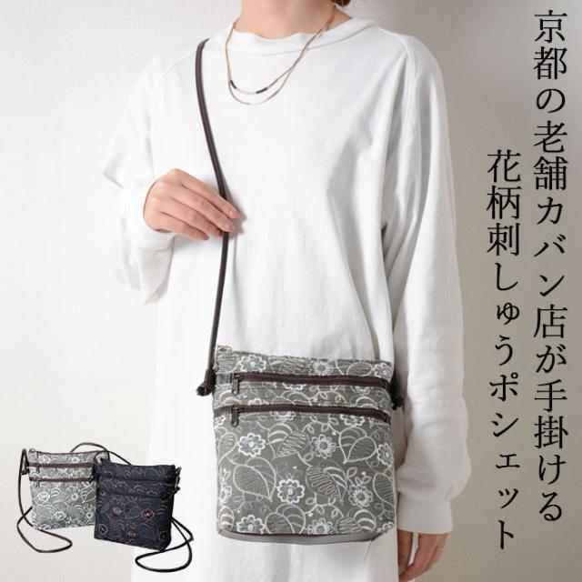 *繊細に表現されたかわいらしいフラワー刺しゅうを全体に施したポシェット。