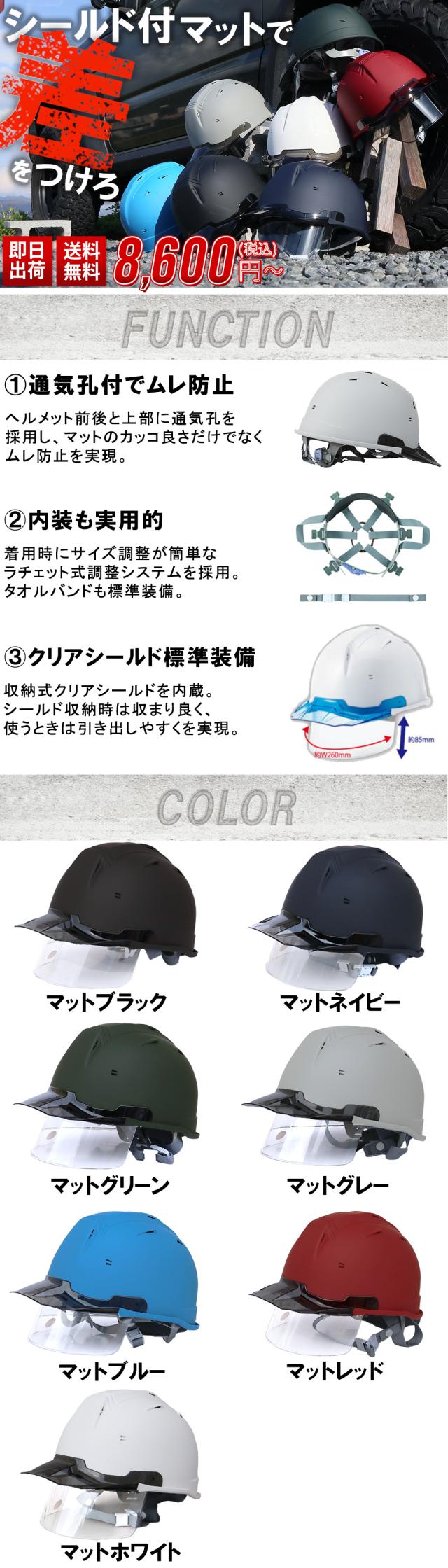 工事ヘルメット シールドヘルメット 進和化学工業 SS-29FSV型T-P式RA(マット塗装) 通気口付き 通気孔 工事用 土木 建築 防災