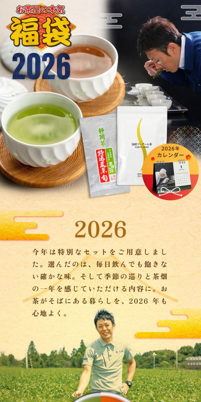 大入り福袋 2026 オリジナルカレンダー お茶 お茶の葉 静岡茶 飲み比べ 詰め合わせ 緑茶 荒茶 茶葉 深蒸し茶 お得 国産 牧之原茶 健康茶 日本茶 fb_da