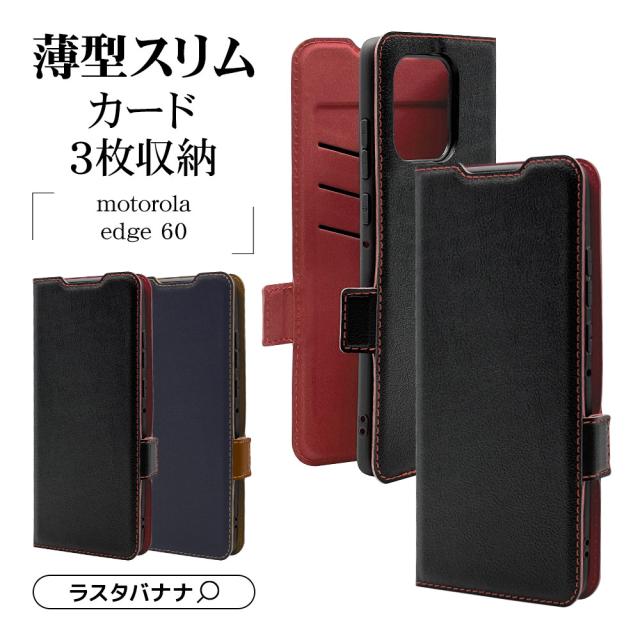motorola edge 60 ケース カバー 手帳型 薄型 耐衝撃吸収 カード収納 スタンド機能 軽量 シンプル 大人 メンズ レディース +COLOR slim Fit サイドマグネット モトローラ エッジ スマホケース ラスタバナナ