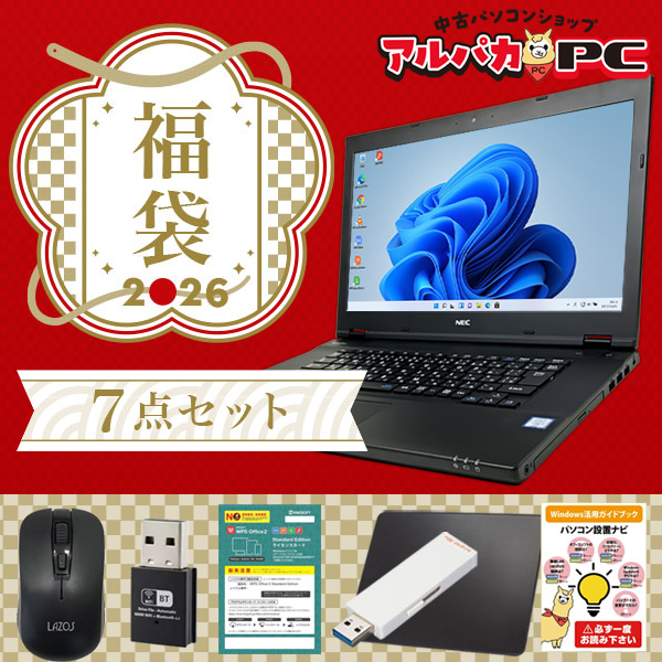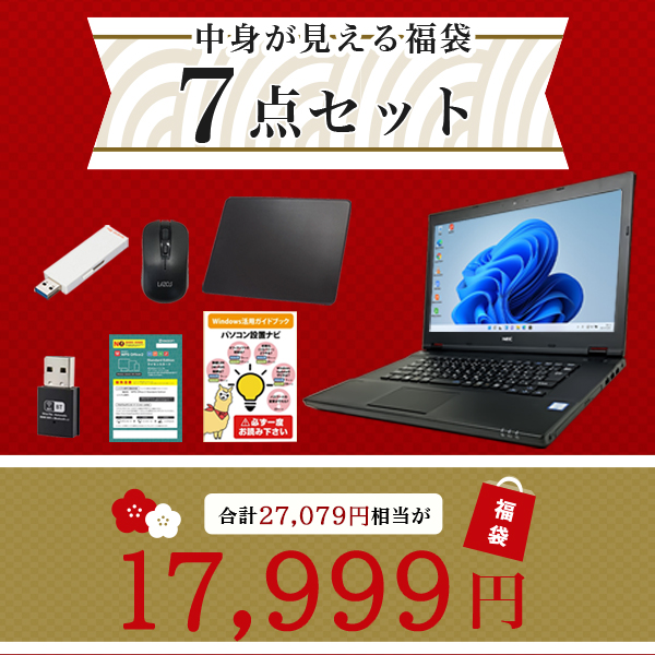 2026新春福袋 7点セット 中古 ノートパソコン 店長おまかせノートPC Windows11 第6世代 Corei3 メモリ8GB SSD128GB 15インチワイド Office付き 中古パソコン 送料無料