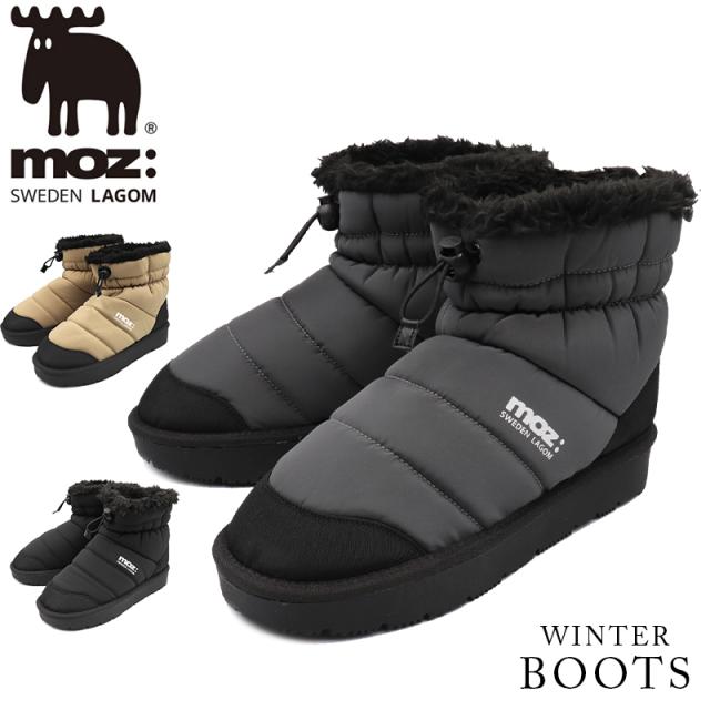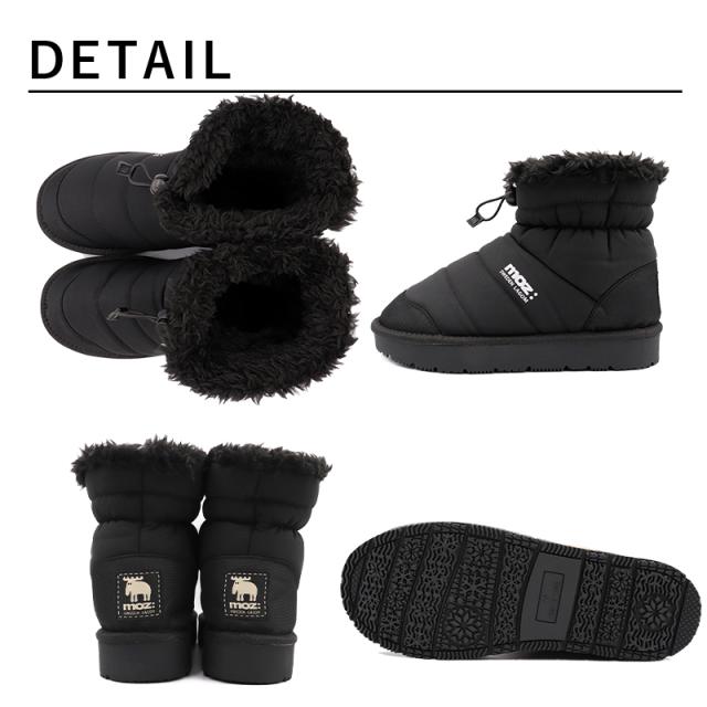 ブーツ レディース ミドル ショート 防水 防滑 moz モズ ムートン 歩きやすい 軽量 黒 ハーフ
