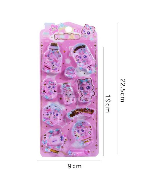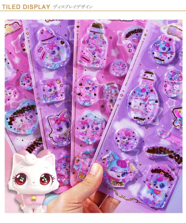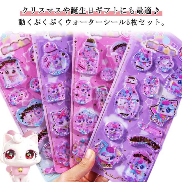 可愛い 3D ウォーターシール ぷくぷくシール 立体シール 女の子 きらきら 小学生 水入りシール 5枚セット 水揺れシール 猫 立体シール ぷっくりシール 透明感 日記 手帳 アルバム 装飾用 DIY用 デコシール 手帳